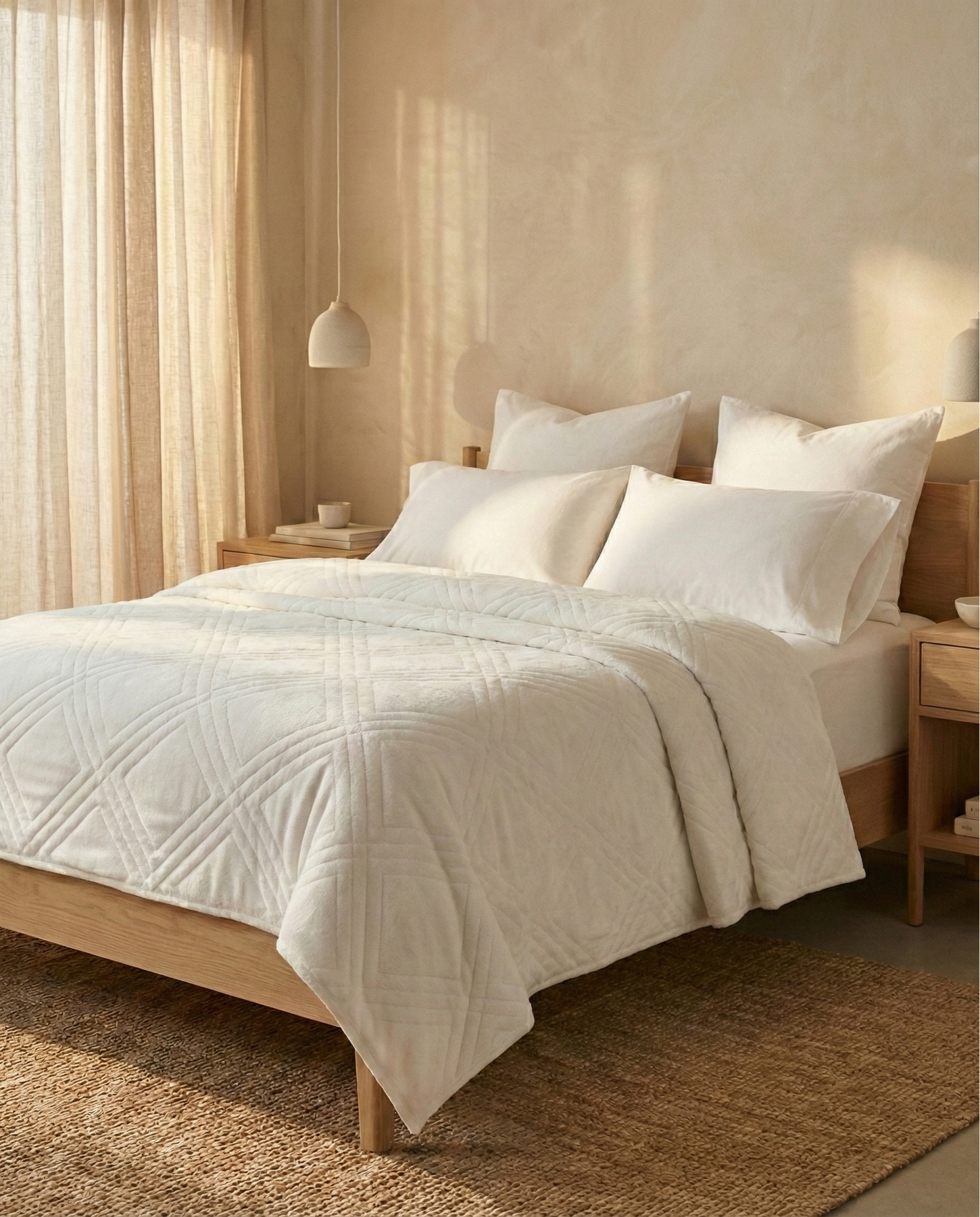 La funda es de Minky, un tejido hipoalergénico de microfibra con una textura súper suave y blanda, similar en tacto al terciopelo y la franela, pero aún más suave.